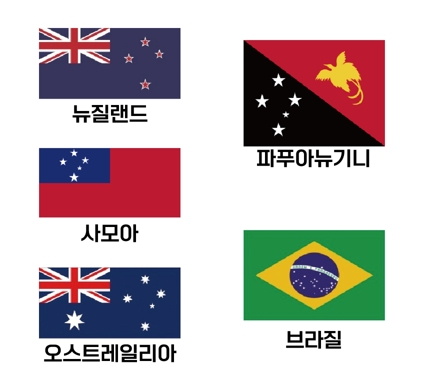 대신 남반구의 여러 나라들이 남십자자리를 얼마나 중요하게 생각했는지 국기에서 찾아볼 수 있어요.