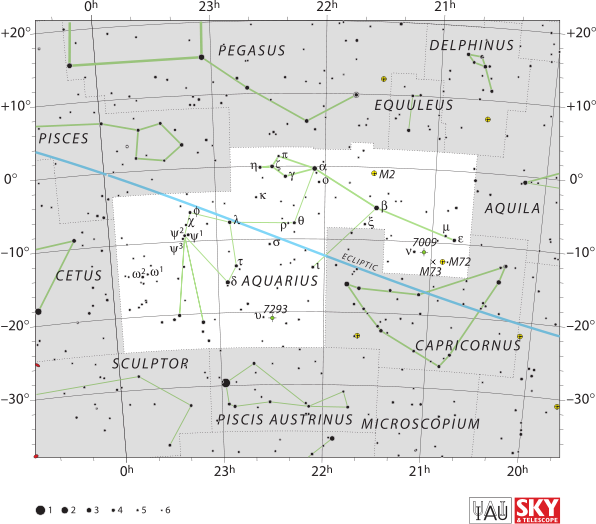 물병자리의 별들은 어둡지만, 각 문화마다 다양한 별이름들이 있고,