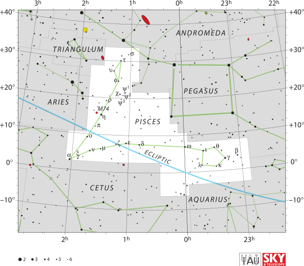 에타별 근처에는 나선모양의 은하 M74를 찾을 수 있습니다.