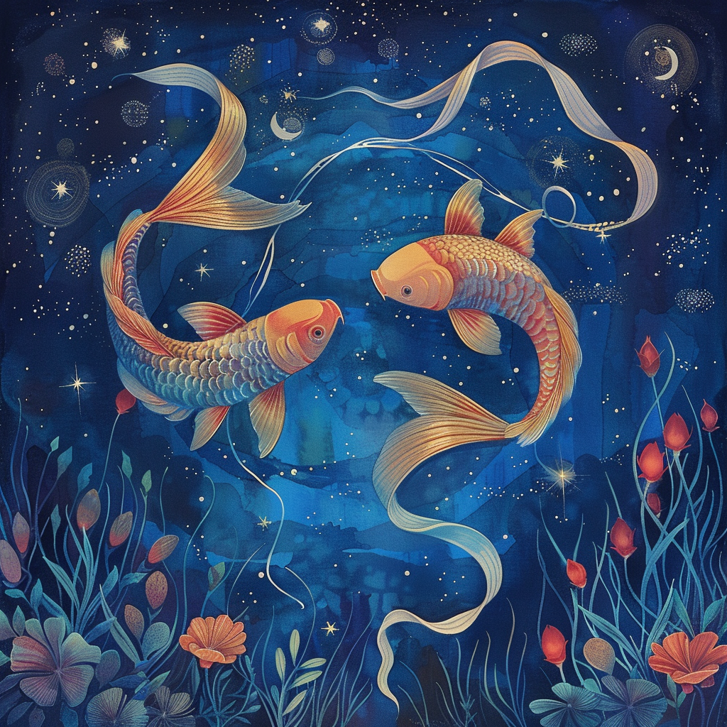 이름에서 가지고 있는 의미처럼 물고기자리는 두 마리의 물고기가 끈으로 연결된 듯한 모습을 상징하고 있는데요.