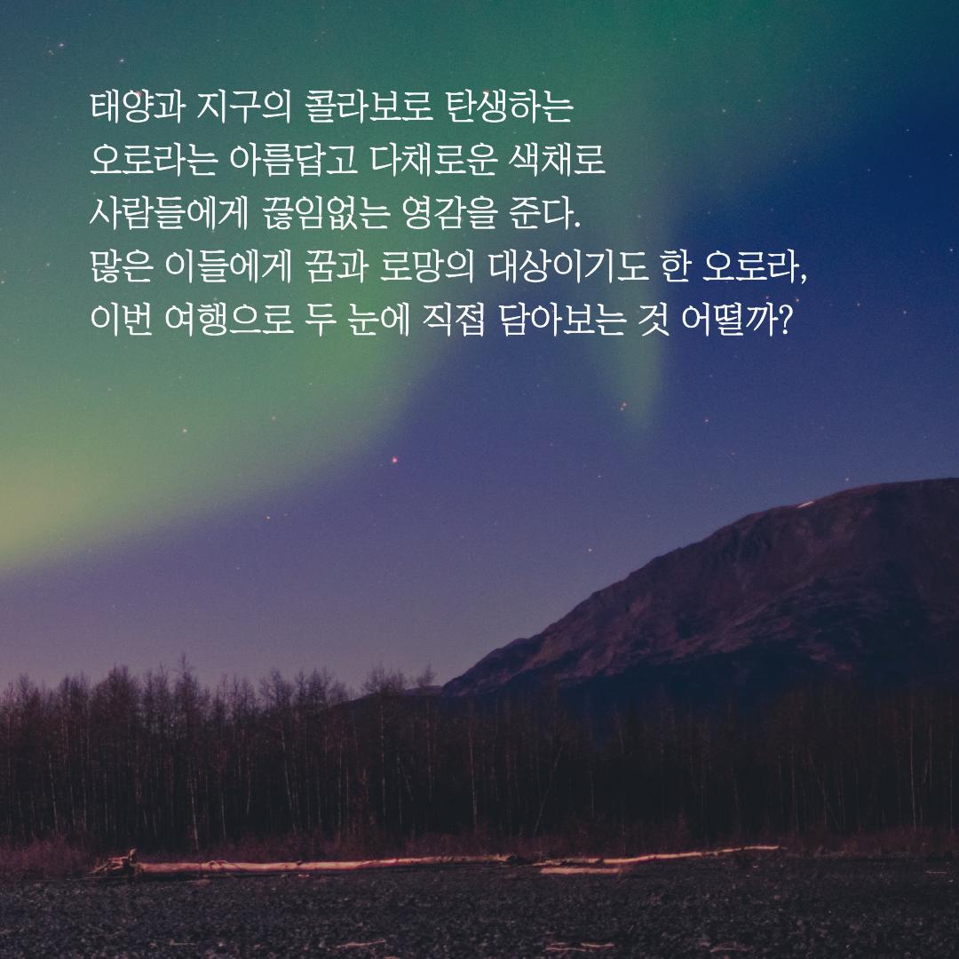 태양과 지구의 콜라보로 탄생하는 오로라는 아름답고 다채로운 색채로 사람들에게 끊임없는 영감을 준다.