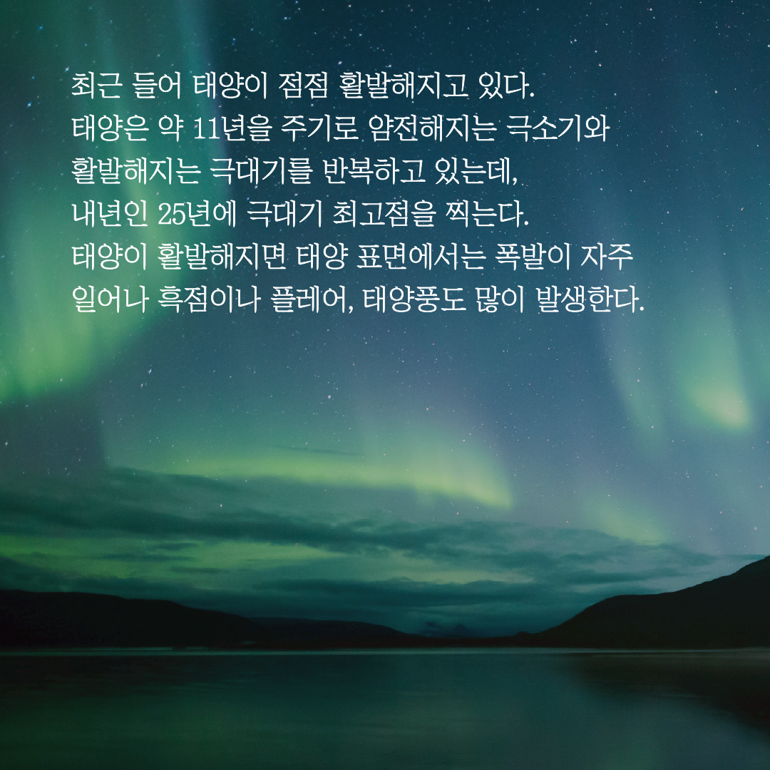 태양의 활동이 오로라 생성에 큰 영향을 미치는 것이다.