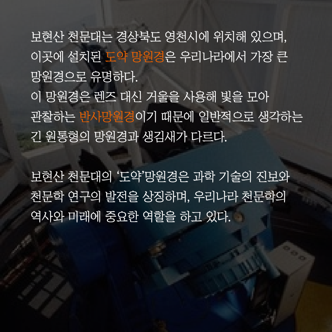 보현산 천문대의 '도약'망원경은 과학 기술의 진보와 천문학 연구의 발전을 상징하며,
