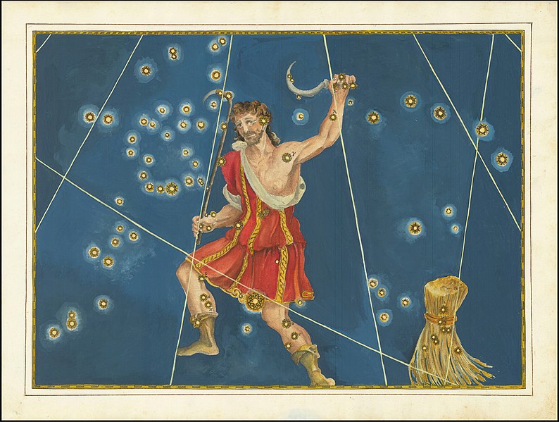 그의 충직한 개는 작은개자리로, 그리고 그의 딸은 처녀자리로 하늘에 올렸다는 이야기가 있습니다.