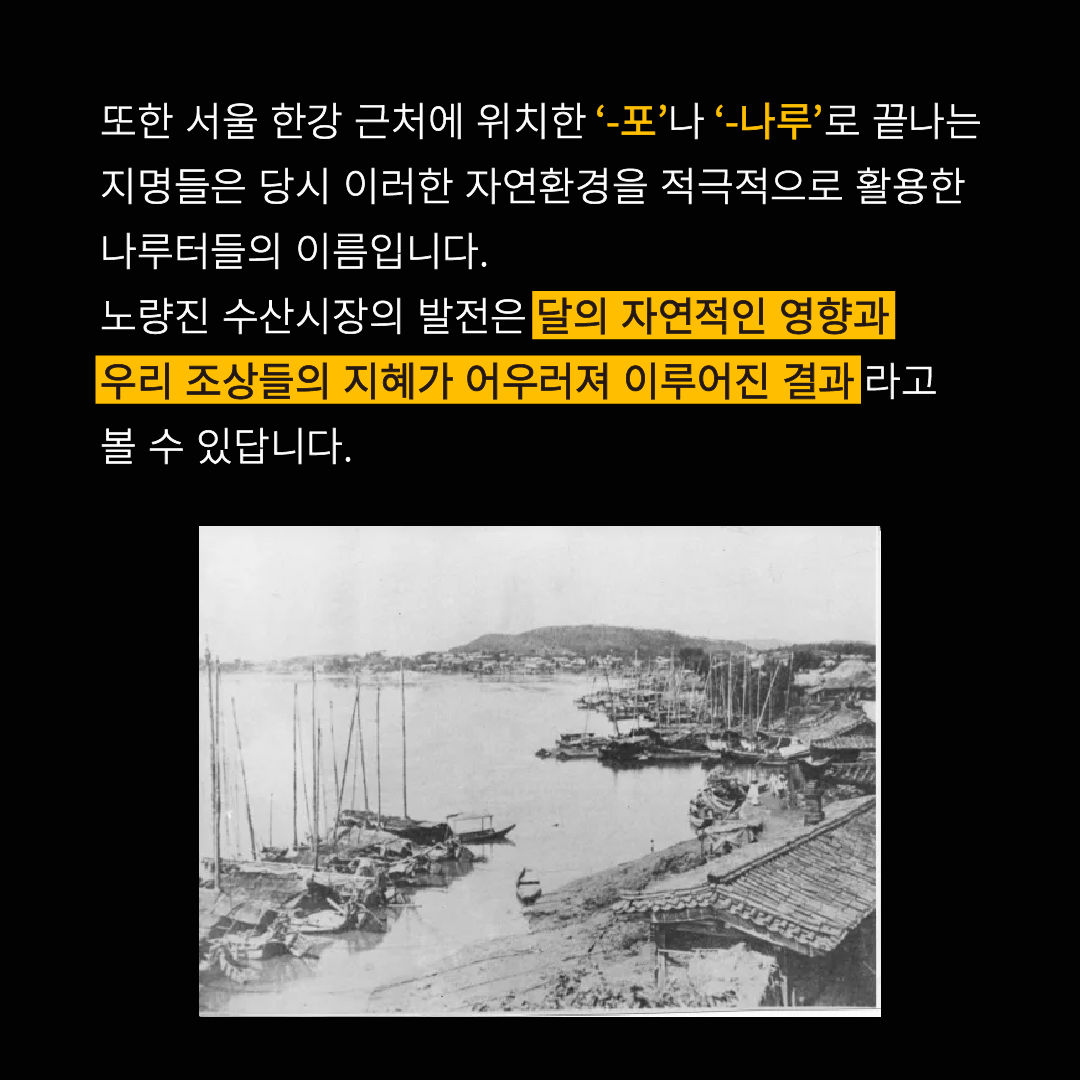 이곳이 수산물 유통의 중심지로 발전할 수 있었던 데에는 달의 역할이 큰데요.