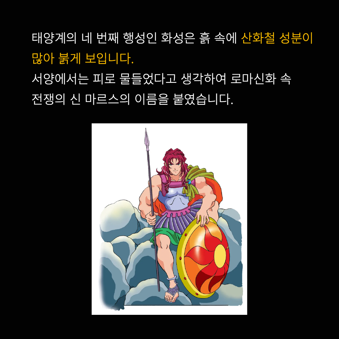 서양에서는 피로 물들었다고 생각하여 로마신화 속 전쟁의 신 마르스의 이름을 붙였습니다.
