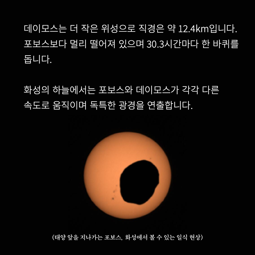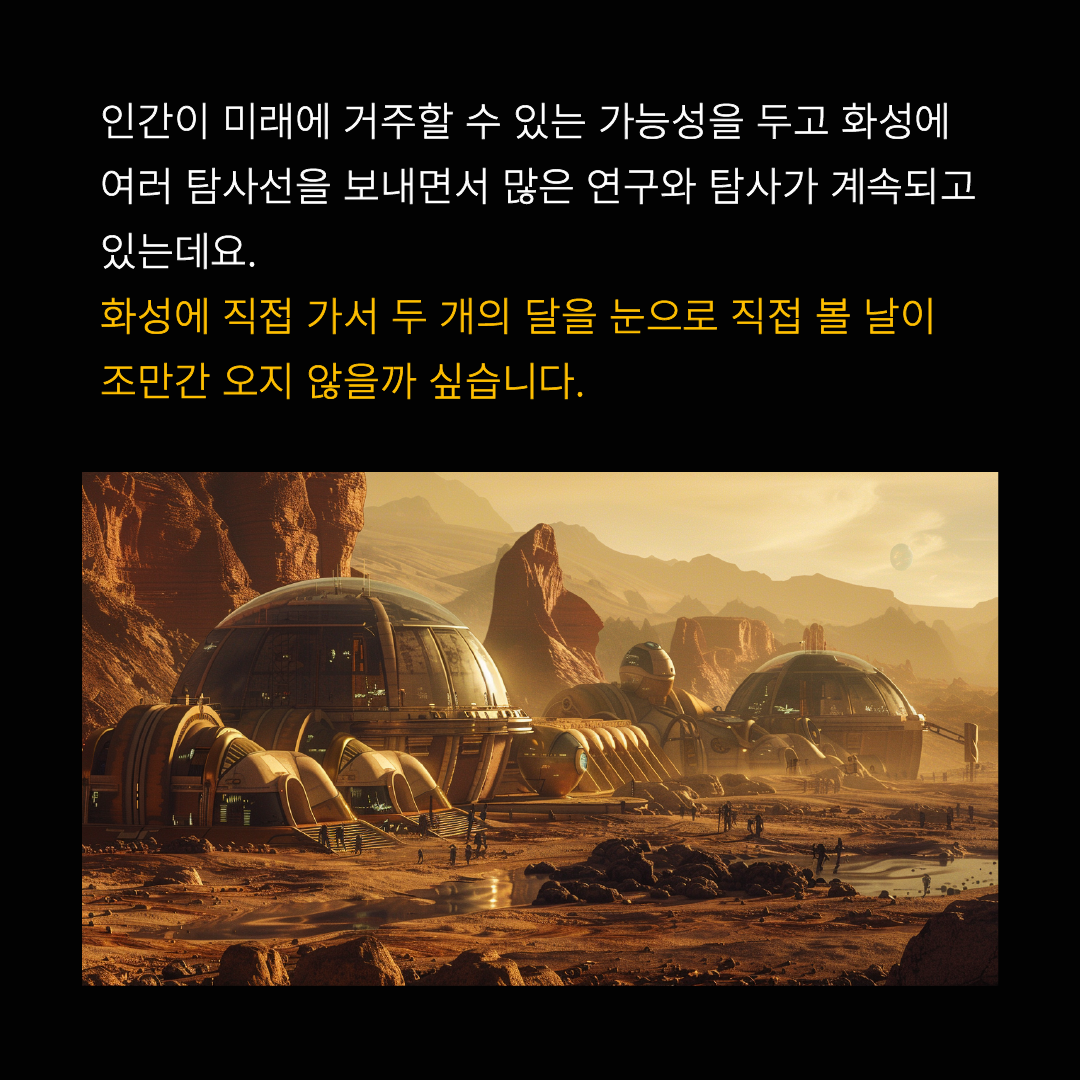 화성에 직접 가서 두 개의 달을 눈으로 직접 볼 날이 조만간 오지 않을까 싶습니다.