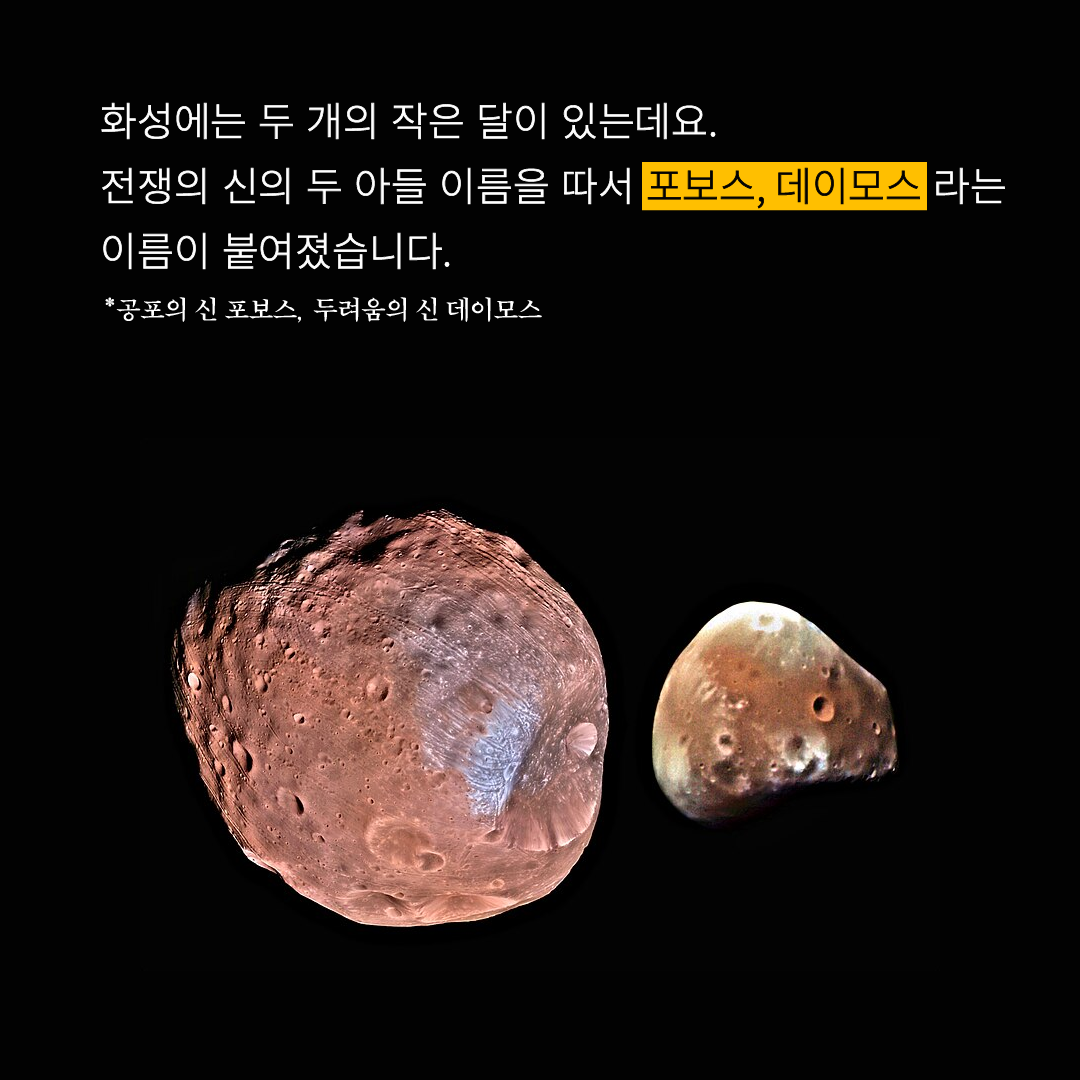 전쟁의 신의 두 아들 이름을 따서 포보스, 데이모스라는 이름이 붙여졌습니다.