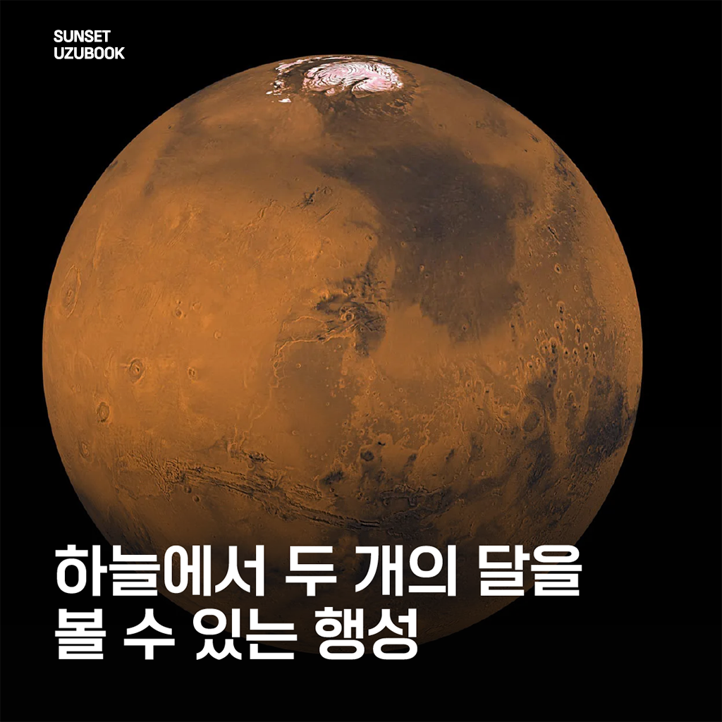 화성의 하늘에서는 포보스와 데이모스가 각각 다른 속도로 움직이며 독특한 광경을 연출합니다.