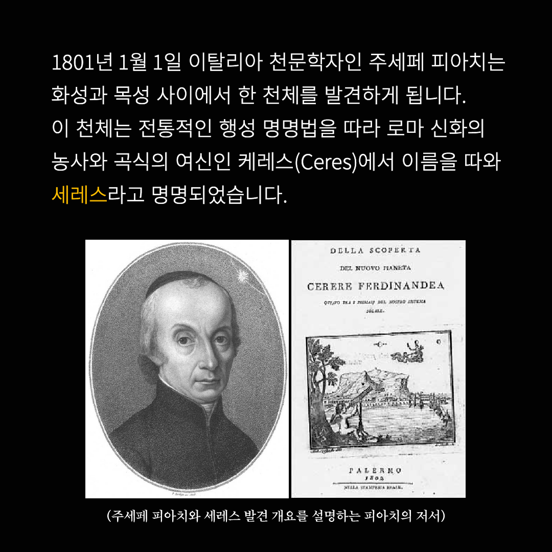 1801년 이탈리아 천문학자인 주세페 피아치는 화성과 목성 사이에서 한 천체를 발견하게 됩니다.