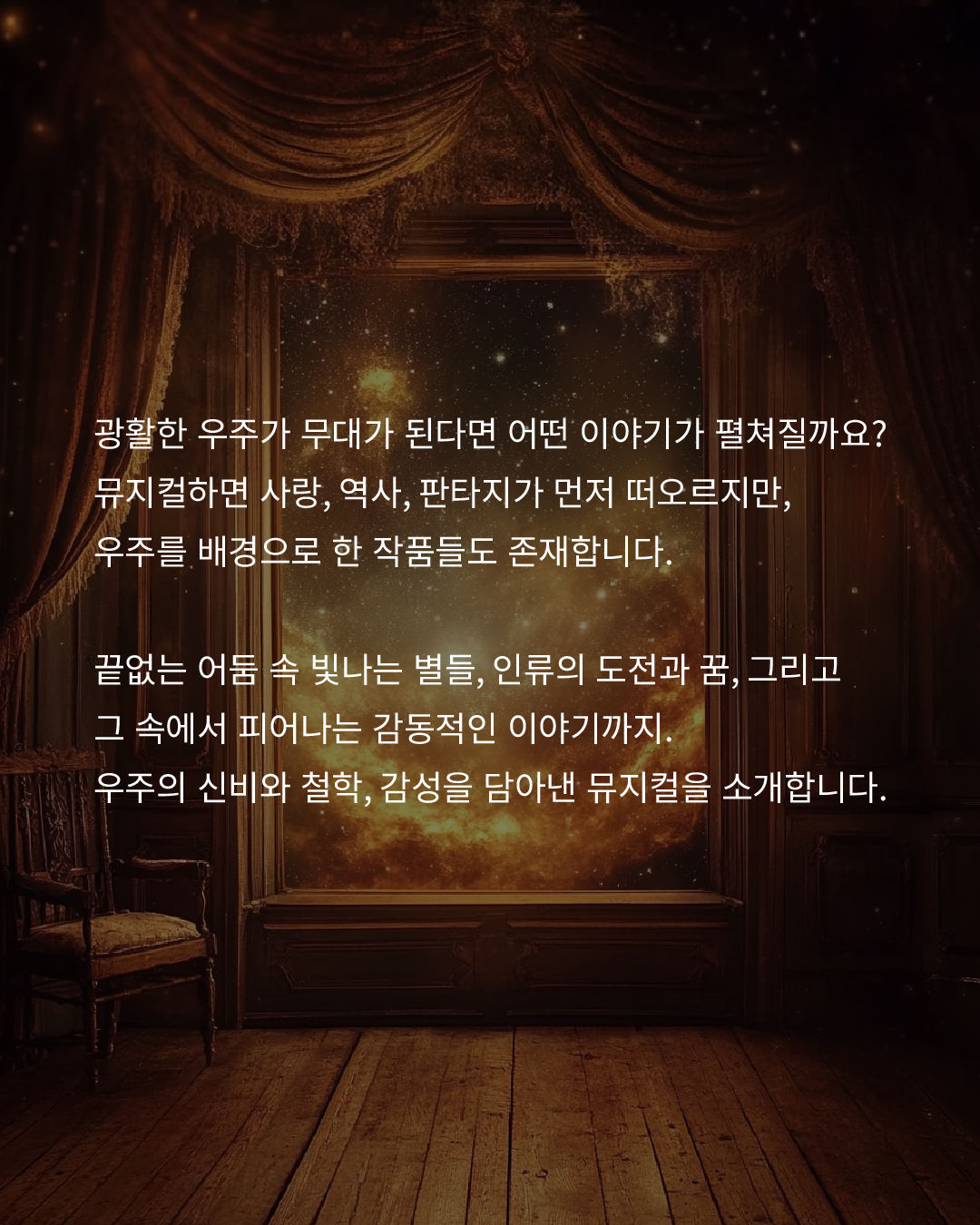 우주의 신비와 철학, 감성을 담아낸 뮤지컬을 소개합니다.